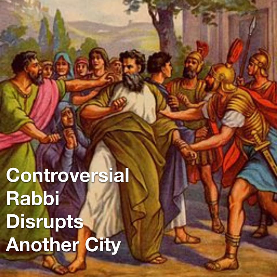 The Rabbi they call Apostle Paul has a history of uprisings in nearly every city he shows up in. This led to the complaint, “those who turned the world upside down have come here also.” We will be watching this man’s movements closely in future updates.