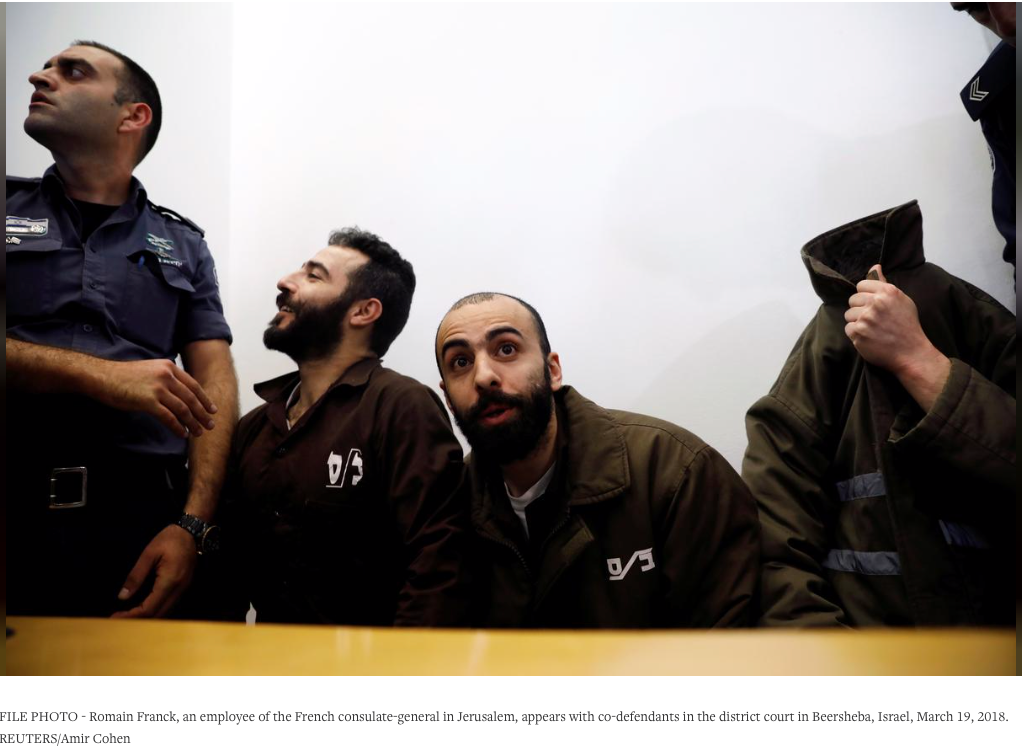 Romain Franck who was arrested in 2018 for smuggling, was an employee of the French consulate-general in Jerusalem. He was sentenced today for seven years after he had confessed to helping Palestinian gun smugglers.
