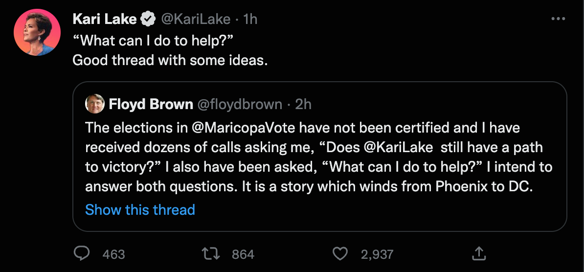 Floyd Brown, the founder of The Western Journal, tweeted a great thread advocating for “local power and pressure” to help apply pressure to the Arizona election situation.