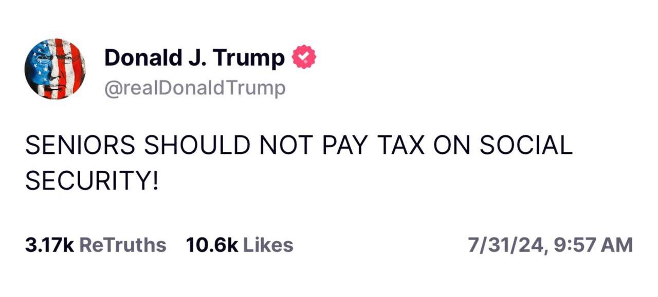 This week, former President Donald Trump posted on Truth Social calling for eliminating the tax seniors must pay on their Social Security checks.